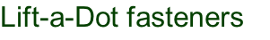 home Lift a dot  stud - 2BA thread M5 thread Double height stud - M5 thread Lift a dot stud - self tapping Single height   Double height Lift a dot stud - 2 screw Lift a dot stud - 2 screw - double height Lift a dot - cloth to cloth Stud and back plate Lift a dot - socket and backplate CIMG3847reduced.jpg Click below to jump to the type of fitting you need. Black Press Studs, Nickel Press Studs, Black ‘pull the dot’ Nickel ‘pull the dot’, Stainless Press studs, Lift-a-dot Tenax, sets of fittings, specials, tools Lift-a-Dot fasteners To buy  Lift-a-dot fasteners click here